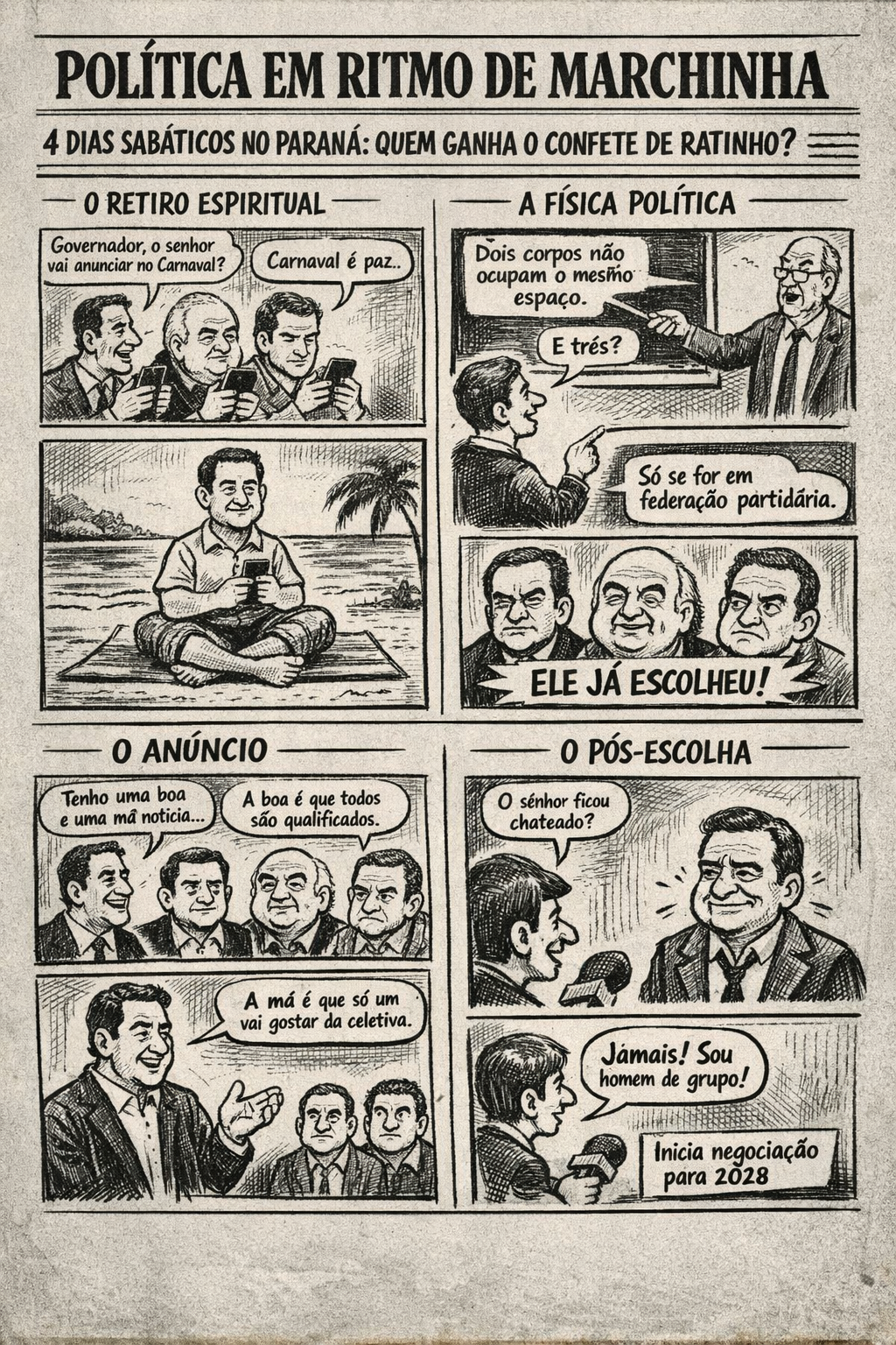 Após o Carnaval, a expectativa é de que o governador Ratinho Junior avance na definição de um caminho político para a sucessão, tarefa que envolve equilibrar interesses internos da base aliada e evitar rupturas entre possíveis pré-candidatos.