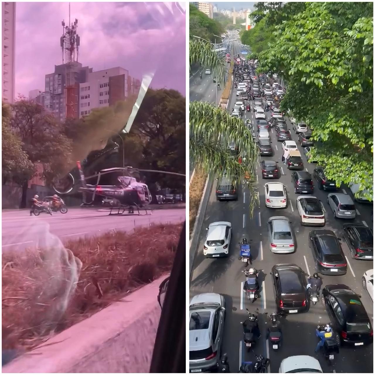 Um helicóptero da Polícia Militar foi acionado para atender um acidente na Avenida 23 de Maio, em São Paulo, nesta terça-feira (14).