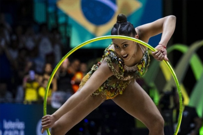 A equipe brasileira encantou o público nas apresentações com fitas e no conjunto misto de bolas e arcos, alcançando 55.250 pontos — resultado que garantiu a prata, atrás apenas do Japão (55.550) e à frente da Espanha (54.750).