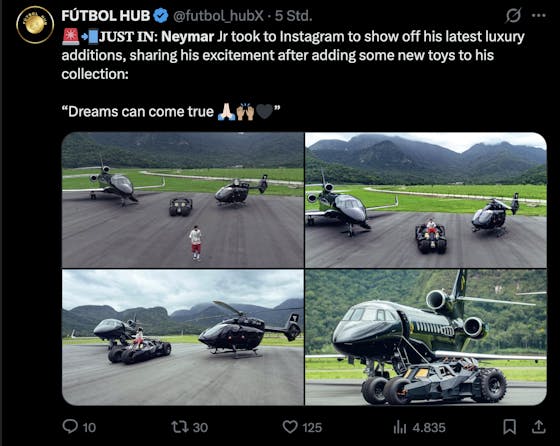 Além de ser um dos melhores jogadores de futebol do mundo, Neymar se tornou uma referência quando se trata de carros. Suas postagens nas redes sociais frequentemente mostram suas novas aquisições e passeios, gerando buzz e inspirando fãs ao redor do mundo.
