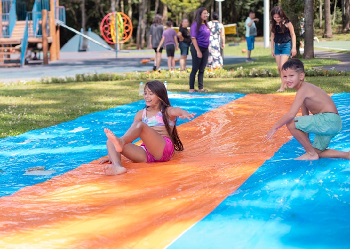 A programação do lazer em sete parques inclui uma diversa oferta de atrações para a criançada e suas famílias. Estão disponíveis brinquedos infláveis aquáticos, lona de skibunda com canhão de espuma, jogos de tabuleiro gigantes, futebol de botão, cama elástica e circuito de bicicleta, além de pintura em papel kraft e brinquedos recreativos clássicos. Quadras esportivas para beach tennis, voleibol, mini futebol e tênis de mesa também estão abertas para a prática esportiva.