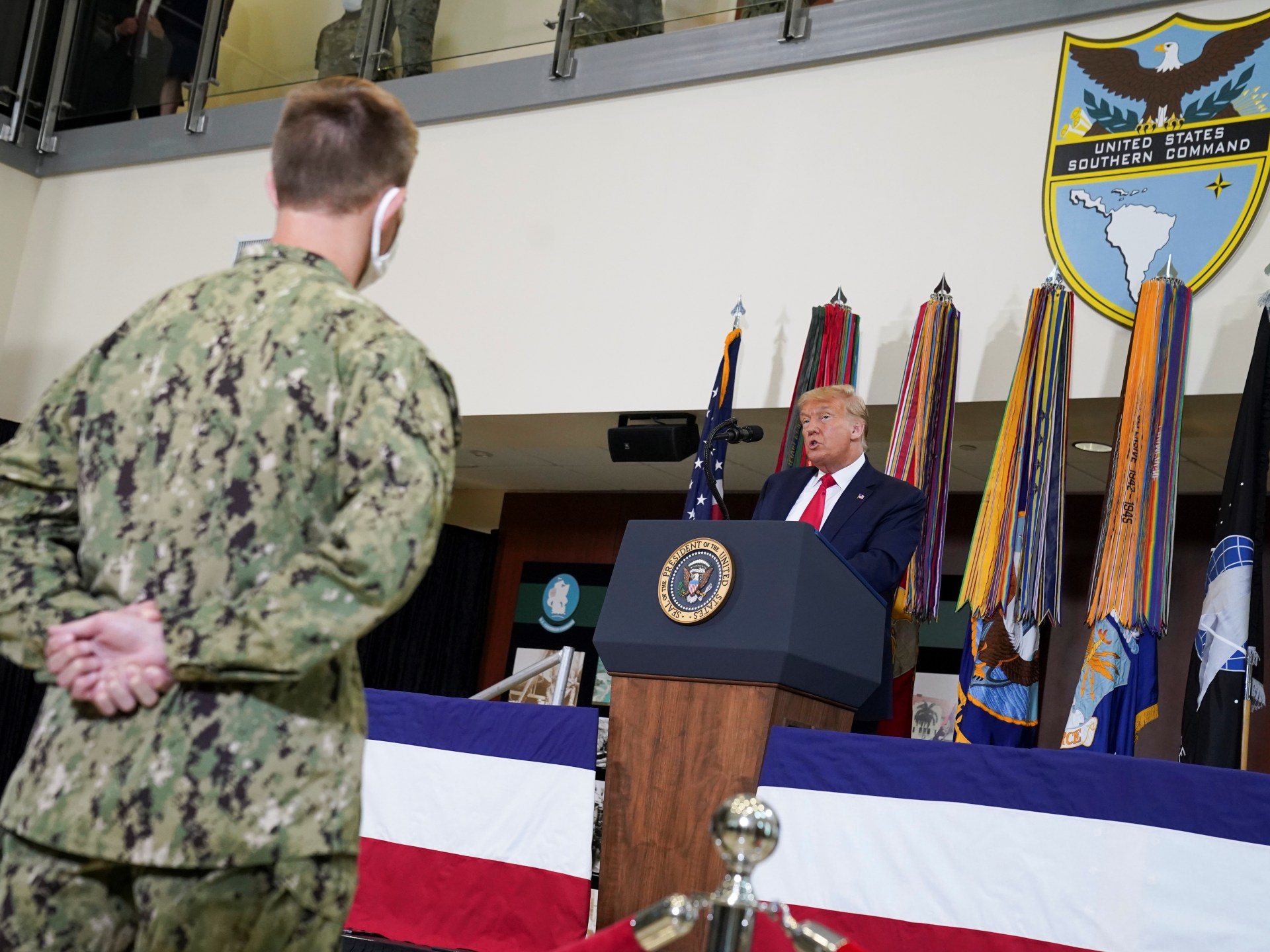 A U.S. Southern Command (SOUTHCOM) é responsável por 31 países na América do Sul, América Central e Caribe. Recentemente, os fuzileiros navais dos EUA conduziram treinamentos de artilharia a bordo do USS Iwo Jima, um navio de assalto anfíbio, no Caribe. Essas ações estão alinhadas com as prioridades do presidente Donald Trump de interromper o tráfico de drogas ilícitas.