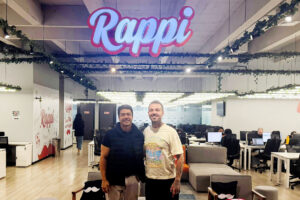 Legenda: Na foto, o CEO do Rappi, Felipe Critini, com Junior Marcondes, do ItiGO Poke.