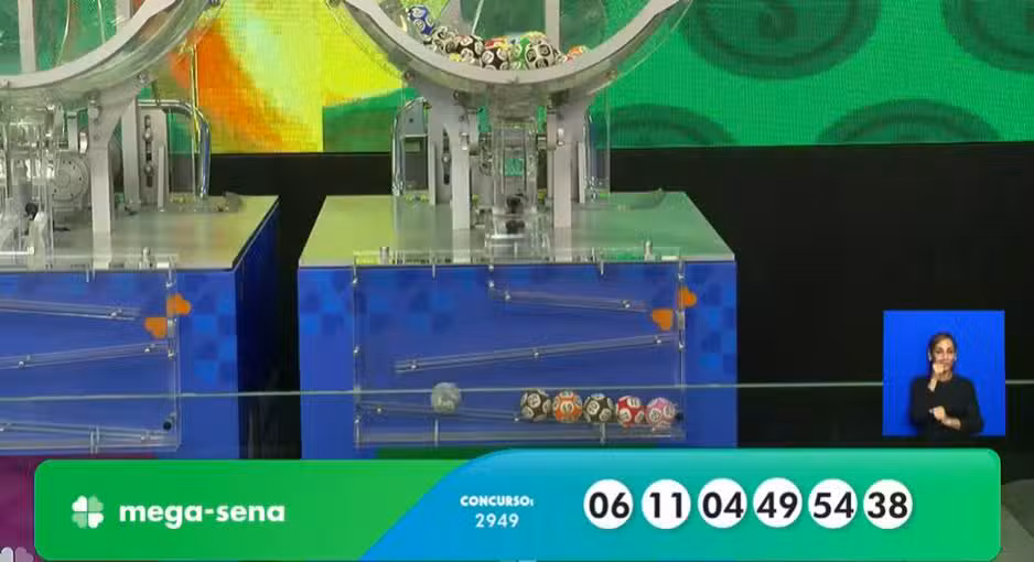 A Mega-Sena 2949 movimentou a noite desta terça-feira (9), quando a Caixa Econômica Federal realizou o sorteio com um prêmio acumulado de R$ 17,5 milhões. As seis dezenas sorteadas foram 04, 06, 11, 38, 49 e 54, em evento realizado às 20h no Espaço da Sorte, em São Paulo, com transmissão ao vivo.