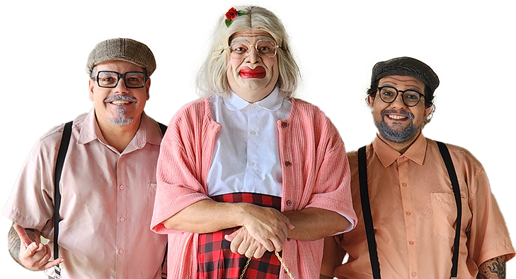 Caracterizados como personagens da terceira idade, os músicos tocam sucessos do estilo rock pop no palco do Teatro Guaíra