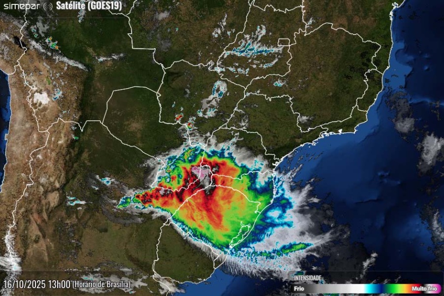 O meteorologista Fernando Mendes, do Sistema Meteorológico Simepar, explicou que a previsão é de um dia chuvoso em várias regiões, com instabilidades a partir do nordeste da Argentina e sul do Paraguai.