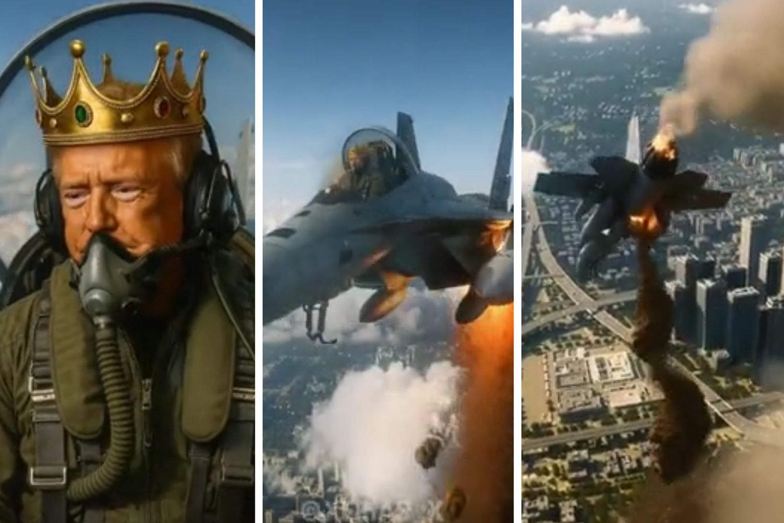 No vídeo, Trump é retratado usando uma coroa e pilotando um avião batizado de ‘King Trump’. Ao sobrevoar a Times Square, onde ocorria um dos protestos, a aeronave solta uma ‘bomba’ de fezes sobre os manifestantes, ridicularizando a oposição.